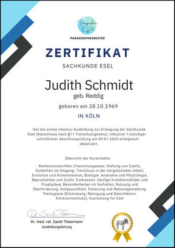 Judith Schmidt hat die Sachkundeprüfung erfolgreich bestanden.